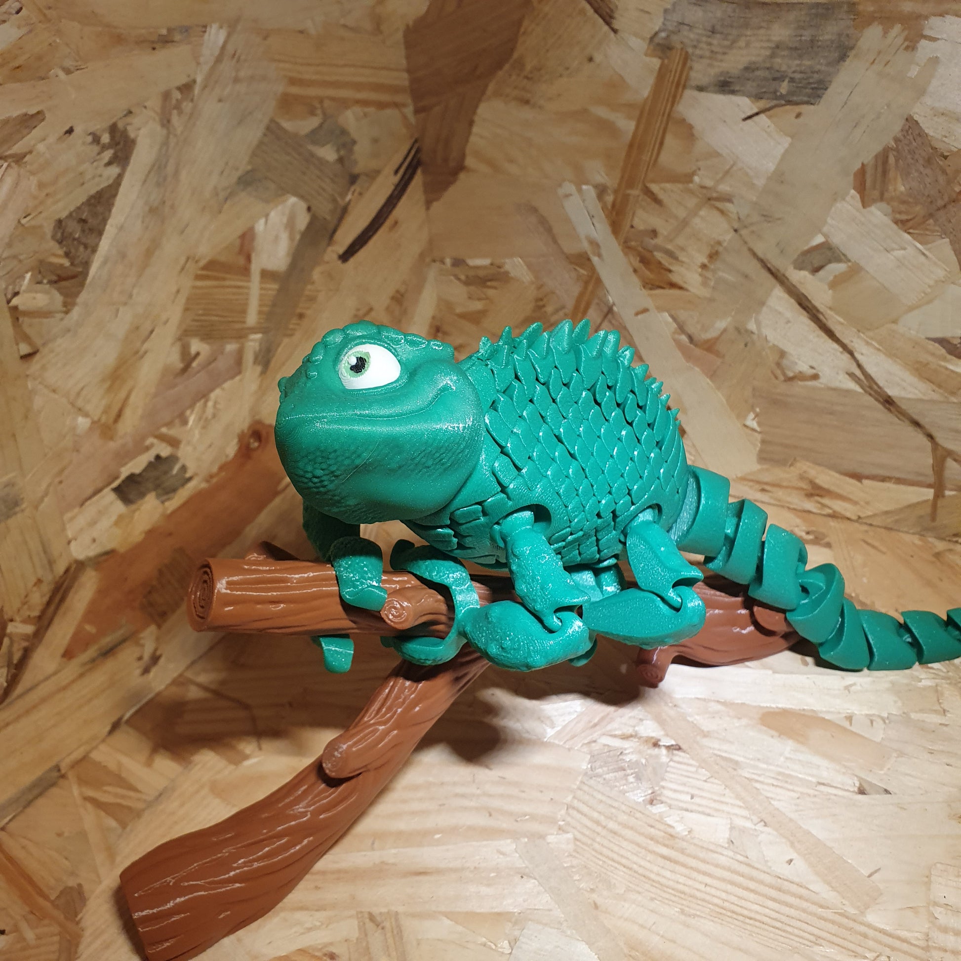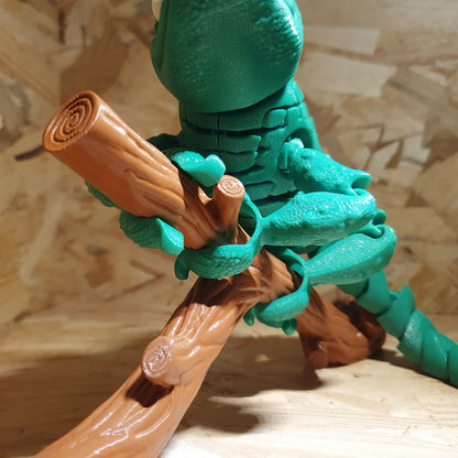 Invitez un petit morceau de jungle chez vous avec ce caméléon imprimé en 3D, aussi fascinant qu'élégant. Ce caméléon est conçu pour offrir une expérience réaliste : son corps est flexible, lui permettant de s'onduler de manière fluide, tandis que sa tête, ses pattes, et sa queue sont articulées pour ajouter une touche de vie. Perché sur sa branche incluse, il peut s'agripper et adopter différentes poses, comme un vrai caméléon en pleine exploration. Un objet décoratif unique qui émerveillera les amoureux de la nature et de l'impression 3D !